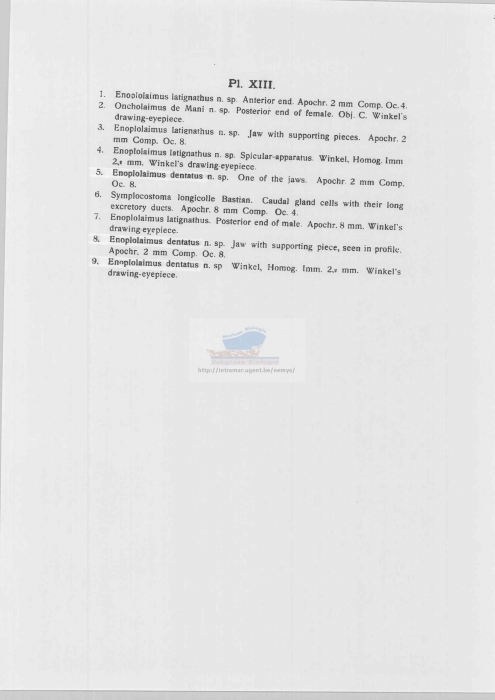 Description Nematode file-library of the Marine Biology Section (Ghent University, Belgium) JPG file - 299.29 kB - 1 652 x 2 338 pixels added on 2004-10-18728 viewsERMS taxaScan of literature (text) Oxyonchus dentatus (Ditlevsen, 1918) Filipjev, 1927checked Vanaverbeke, Jan 2014-04-10 From reference (S.d.). Nematode filing cabinet of the Marine Biology Sec... Download full sizeDownload full size