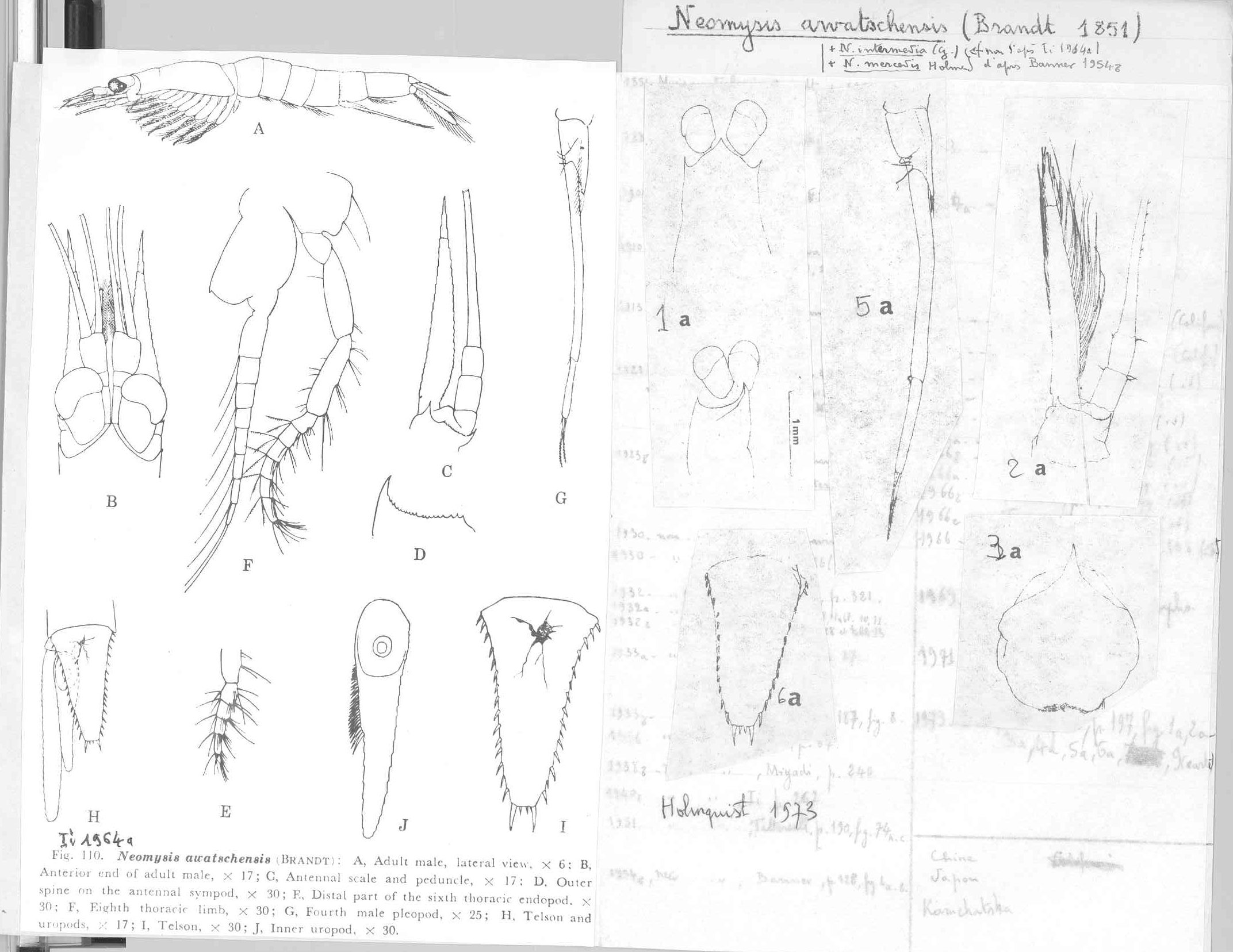 Photo GalleryScan taken from personal notes of H. Nouvel stored at CNRS La Rochelle (France) by Jean Paul Lagardere. JPG file - 408.83 kB - 2 144 x 1 656 pixels added on 2004-06-11487 viewsERMS taxaScan of drawing Neomysis awatschensis (Brandt, 1851)checked Väinölä, Risto 2024-12-22 Download full size
