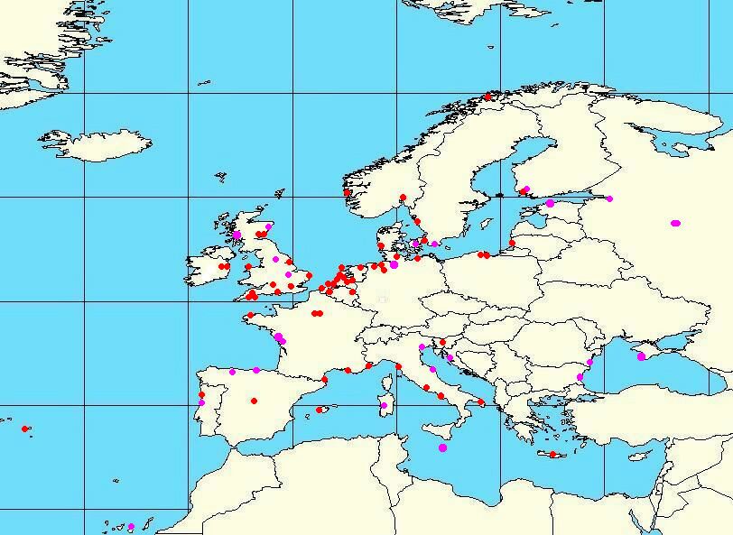 Click on a dot to view the institute's contact details. Red dots are full partners, pink dots are associated partners.
